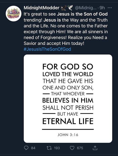 Still, something as semi-amusing as “Jesus is King” tweets briefly flooding a Nice Jewish Boy’s Twitter timeline could actually imply larger, complex problems when it comes to religious-based algorithmic systems. It’s almost as if social media systems are offensive on ethical, legal, and spiritual levels now... and don’t really know that much about us beyond lumping us into advertiser-friendly demographics, of which religion evidently isn’t an especially pressing one.