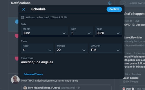 Scheduling of tweets is a feature that has long been reserved for applications like TweetDeck and Hootsuite that are directed at businesses wanting to make sure their content goes live in regular intervals. Some research has shown that there are specific times of day when tweets will get more engagement, though considering Twitter is a global service targeting the right moment isn't an exact science.