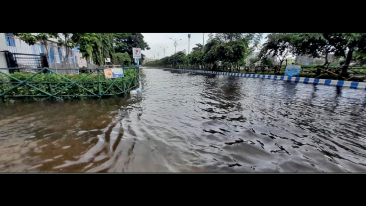 In New Town, road stretches in front of some housing complexes in Action Area II-D remained inundated with over ankle deep water “The parking lot in our complex was still under water and it is difficult to bring out low height vehicles. The water is flowing backwards from the canals and the road is still fully waterlogged,” said Kingshuk Chakraborty, a resident of Greenfield Ambition housing complex.