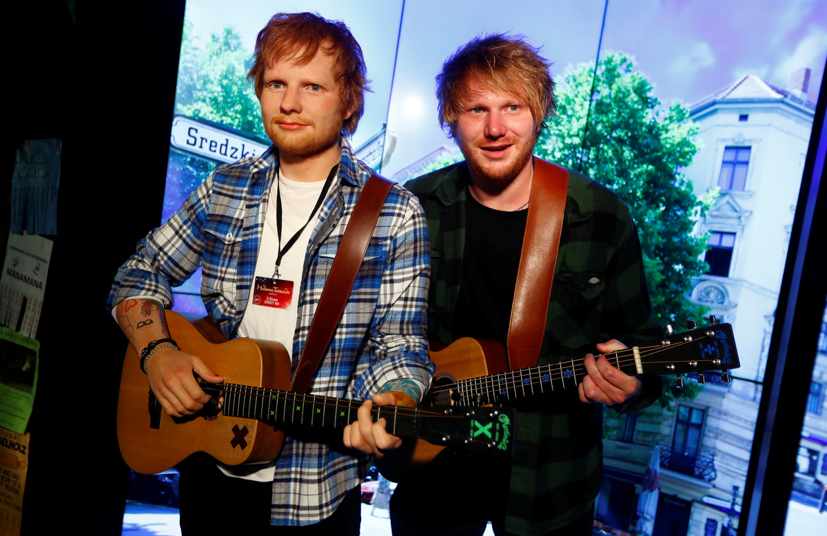 London's Madame Tussauds last month unveiled a different model of Sheeran at Lady Dinah's Cat Emporium in London, where customers sip their drinks surrounded by felines.