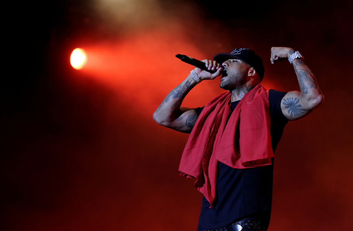 PARIS (Reuters) - At least two people were injured after gunmen ambushed a video shoot involving French rapper Booba, authorities said on Wednesday, in the latest incidence of violence marring the suburbs of Paris.