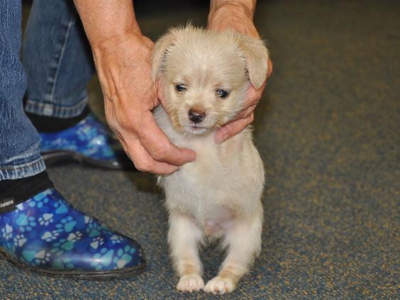 The puppy is not presently up for adoption, but with his foster mother having a particular soft spot for Tumbles he is expected to stay with her.