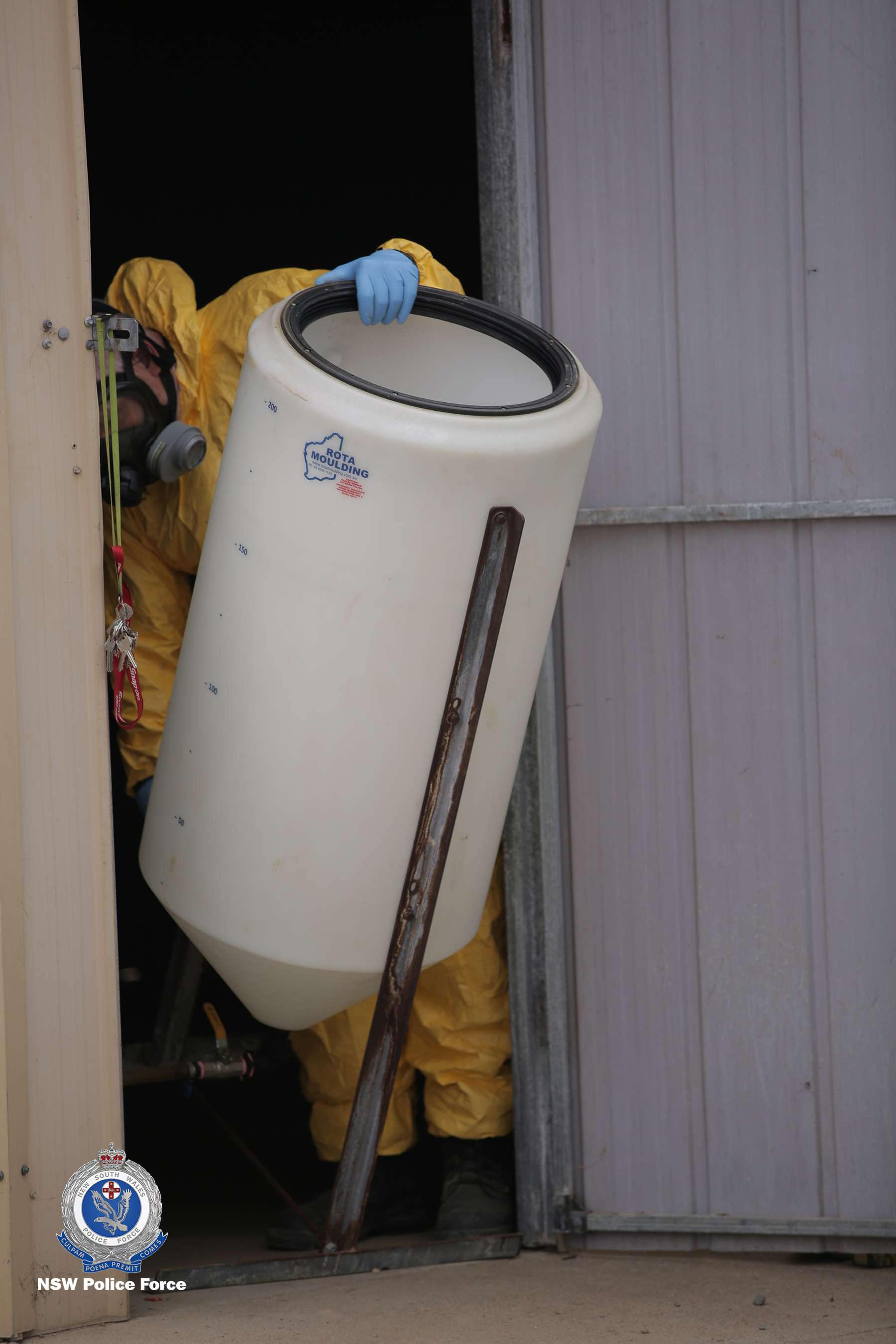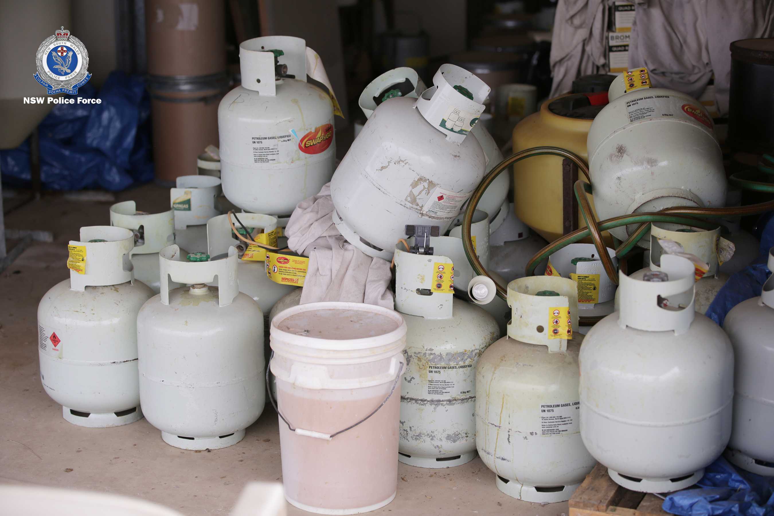 Police found 45 litres of methylamphetamine oil and a large laboratory spread over several sheds.