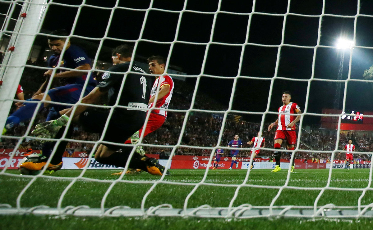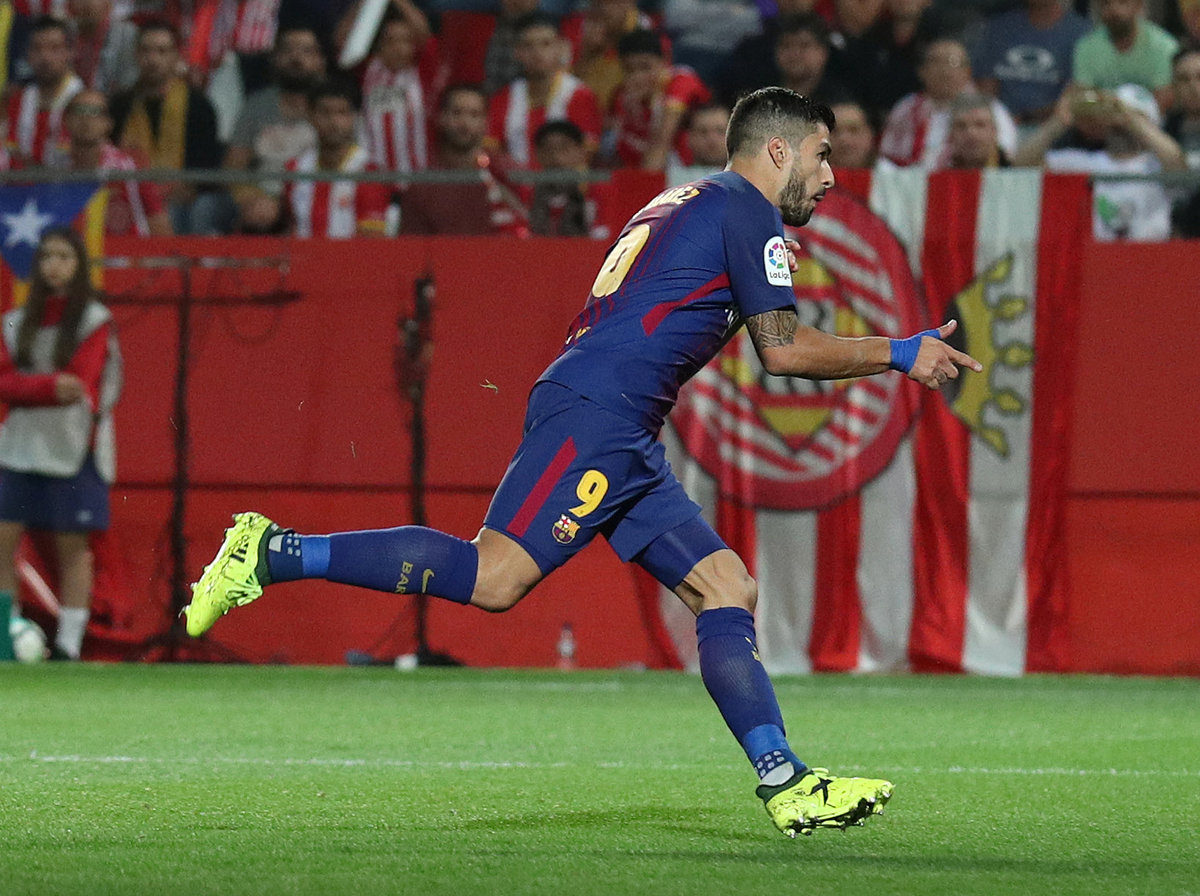 Soccer Football - Santander La Liga - Girona vs FC Barcelona - Estadi Montilivi, Girona, Spain - September 23, 2017 Barcelona’s Luis Suarez celebrates scoring their third goal REUTERS/Albert GeaSoccer Football - Santander La Liga - Girona vs FC Barcelona - Estadi Montilivi, Girona, Spain - September 23, 2017 Barcelona’s Luis Suarez celebrates scoring their third goal as Girona's Gorka Iraizoz and Jonas Ramalho look dejected REUTERS/Albert GeaSoccer Football - Santander La Liga - Girona vs FC Barcelona - Estadi Montilivi, Girona, Spain - September 23, 2017 Barcelona’s Marc-Andre ter Stegen in action REUTERS/Albert GeaSoccer Football - Santander La Liga - Girona vs FC Barcelona - Estadi Montilivi, Girona, Spain - September 23, 2017 Barcelona’s Lionel Messi in action with Girona's Juanpe REUTERS/Albert GeaSoccer Football - Santander La Liga - Girona vs FC Barcelona - Estadi Montilivi, Girona, Spain - September 23, 2017 Barcelona’s Lionel Messi goes down REUTERS/Albert GeaSoccer Football - Santander La Liga - Girona vs FC Barcelona - Estadi Montilivi, Girona, Spain - September 23, 2017 Barcelona’s Andre Gomes in action with Girona's Johan Mojica REUTERS/Albert GeaSoccer Football - Santander La Liga - Girona vs FC Barcelona - Estadi Montilivi, Girona, Spain - September 23, 2017 Barcelona’s Denis Suarez looks dejected after Girona's Gorka Iraizoz collects the ball from him REUTERS/Albert GeaSoccer Football - Santander La Liga - Girona vs FC Barcelona - Estadi Montilivi, Girona, Spain - September 23, 2017 Barcelona’s Luis Suarez scores their third goal REUTERS/Albert GeaSoccer Football - Santander La Liga - Girona vs FC Barcelona - Estadi Montilivi, Girona, Spain - September 23, 2017 Barcelona’s Luis Suarez attempts to shoot, but it results in an own goal scored by Girona's Gorka Iraizoz REUTERS/Albert Gea