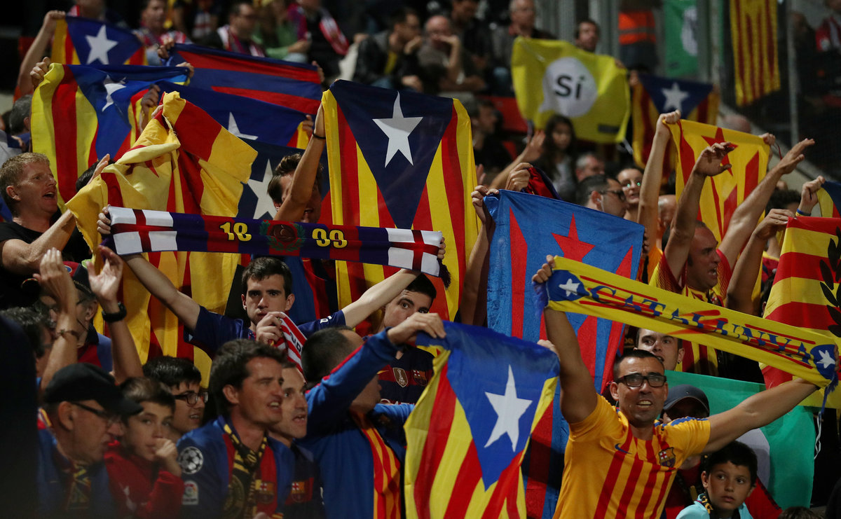 With political tension rising in the region following a self-declared referendum on independence from Spain, the first-ever league meeting between the two sides started amid cries of support for the cause, and some fans carried Catalan separatist flags.