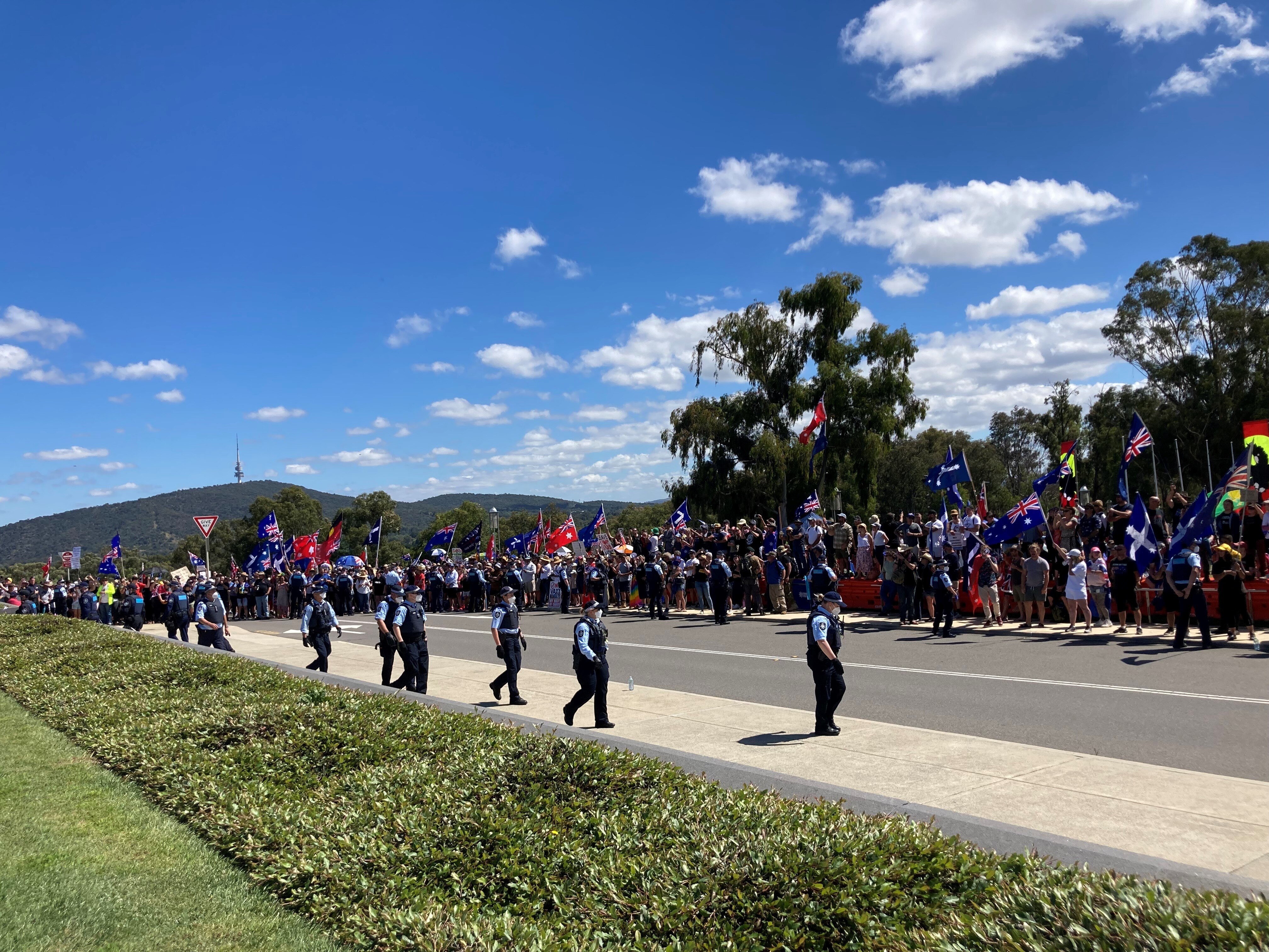 Note: An earlier version of this article said police had arrested four protesters. ACT Policing later corrected its initial advice to three.