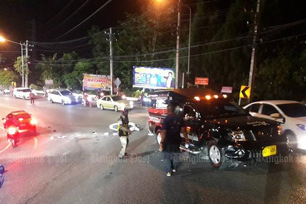 PHUKET: Two Russian tourists received fatal injuries when their motorcycle collided with a songthaew near Patong beach overnight, Phuket Tourist Police said on Monday.