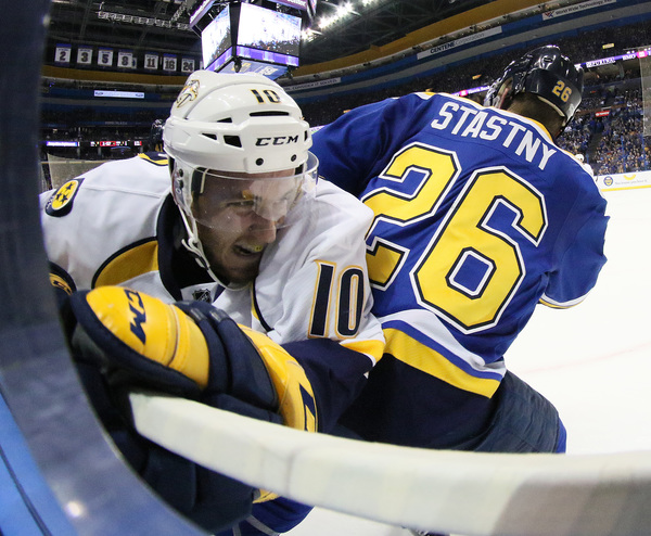 Blues defenseman Alex Pietrangelo failed to clear the puck, and on just the Predators' second shot, Ryan Ellis' blast from the point brushed off Colton Sissons and James Neal on the way past Allen.