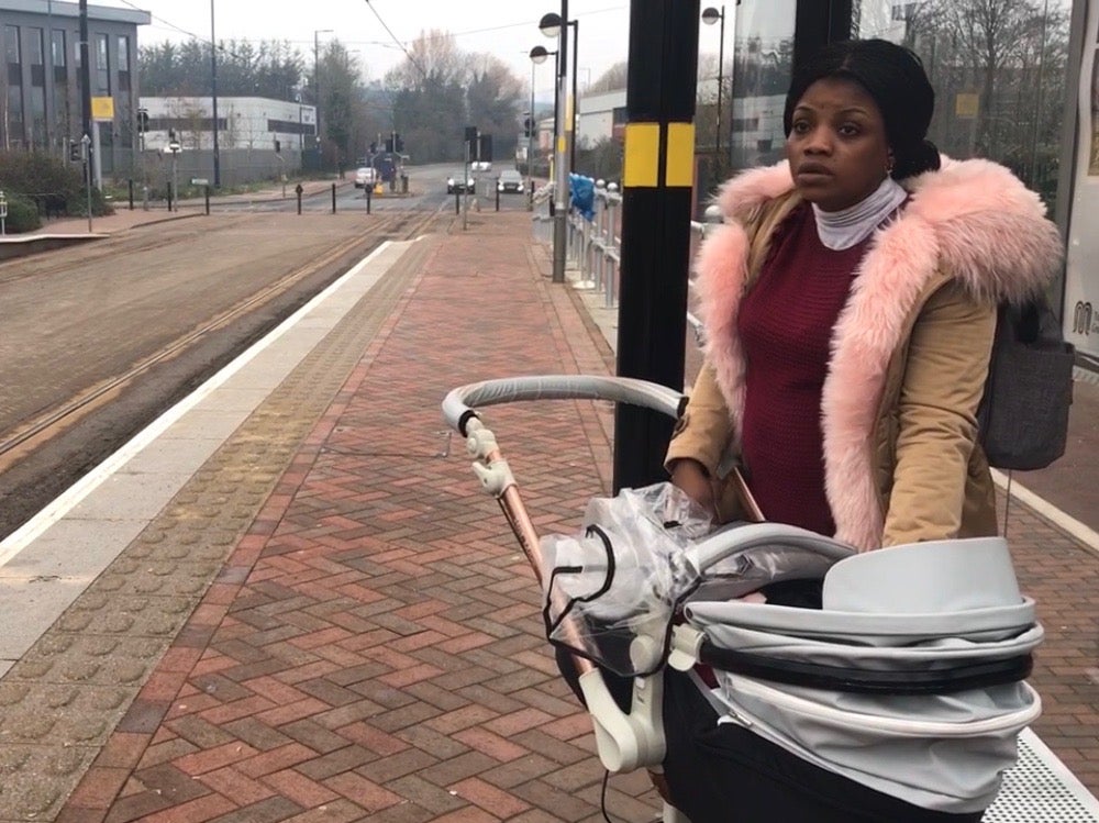 The train pulls into the station at around 9.20am and Faloshade hurriedly wheels the pram out onto the platform. Passengers pile in ahead of her until a man finally helps her board, only for her to realise that she’s on a carriage with no area for pushchairs. She hastily gets back off and rushes to embark on the next carriage.