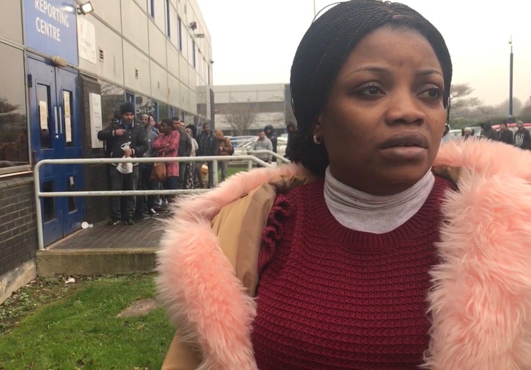 “I feel relieved now. I was very lucky. I can go home in time to pick up my daughter,” says Faloshade, wheeling the pushchair away from the reporting centre. She leaves behind many others who, not so fortunate as to be accompanied by a legal representative or journalist, are likely to be waiting in the cold for a lot longer.