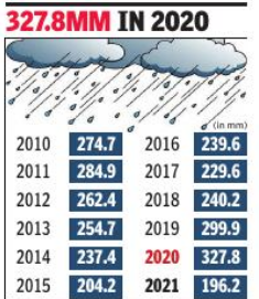 PUNE: The 196.2mm rain in August — a deficit of 24.1% — was the lowest recorded for the month in a 12-year period in the country after the deficient monsoon in 2009. The normal rainfall for the month is an average 258mm. August rains over the past decade have been over 200mm.