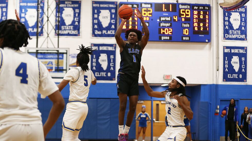 BJ Powell was feeling it. The freshman had an extra hop in his step and a sparkle in his eyes. He wasn’t a freshman anymore, not in the overtimes. Powell had become one of the best players on the floor, leading No. 16 Lincoln-Way East to a 79-75 double-overtime win against No. 12 Bloom on Wednesday in Chicago Heights.