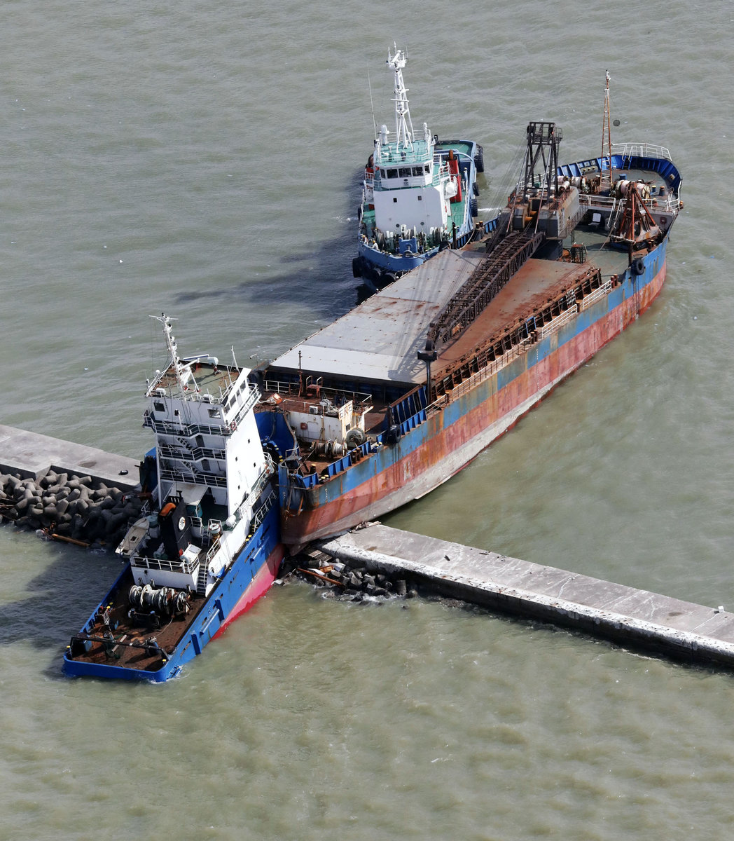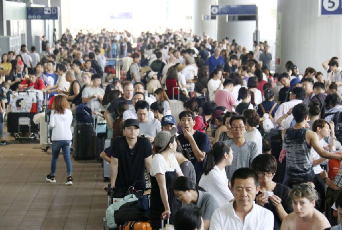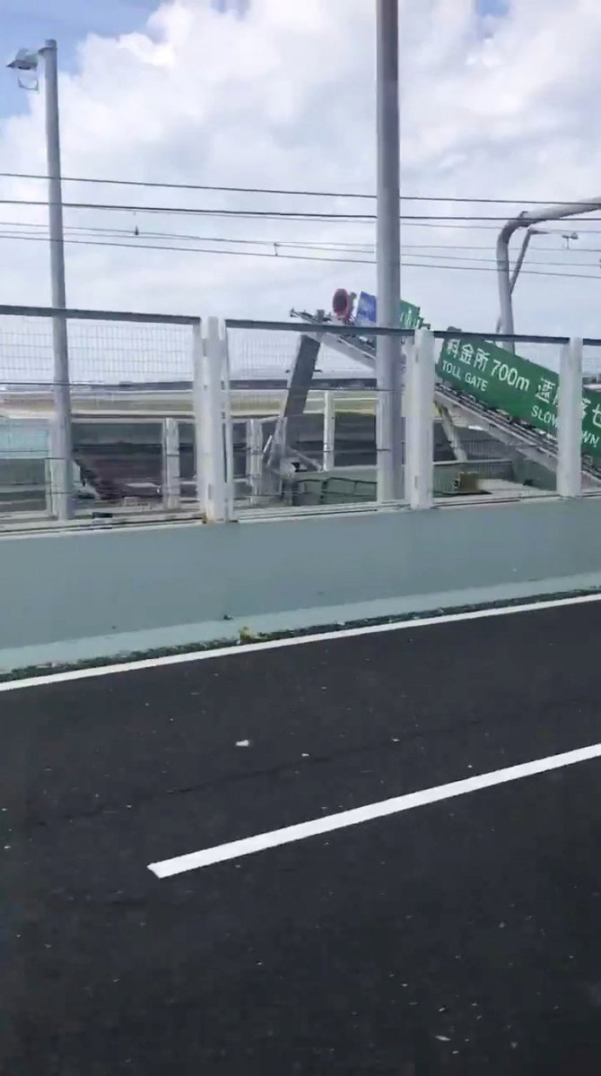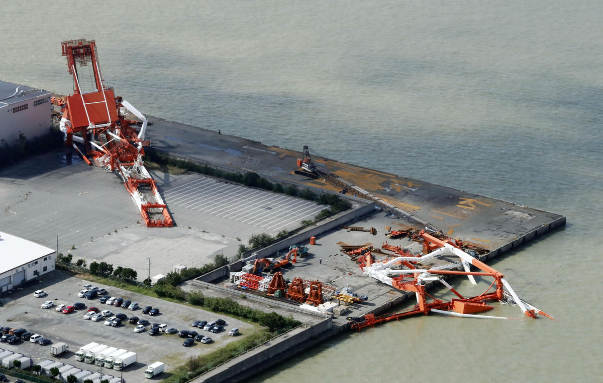 About 3,000 tourists were stuck overnight at Kansai Airport in western Japan, an important hub for companies exporting semiconductors built on reclaimed land on a bay near Osaka and connected to the mainland by a bridge that was damaged when a tanker slammed into it during the storm.