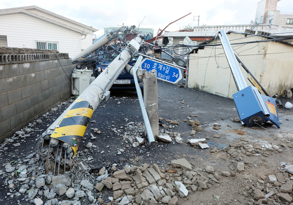The ninth typhoon of the season and the fourth to hit the peninsula this year left about 120,000 households without power across South Korea, officials said.