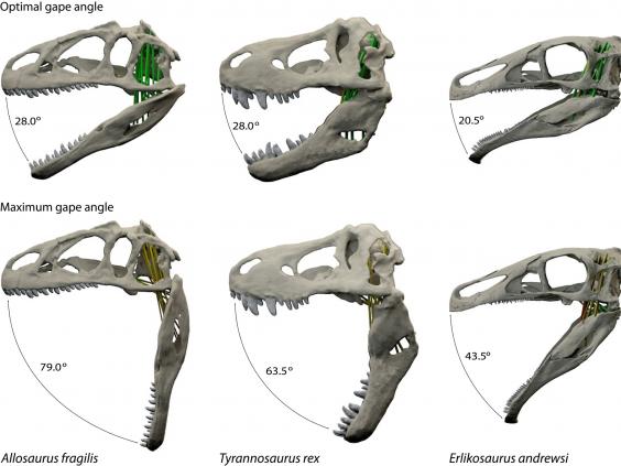 Lead scientist Dr Stephan Lautenschlager, from the School of Earth Studies at the University of Bristol, said: "Theropod dinosaurs, such a Tyrannosaurus rex or Allosaurus, are often depicted with widely-opened jaws, presumably to emphasise their carnivorous nature.