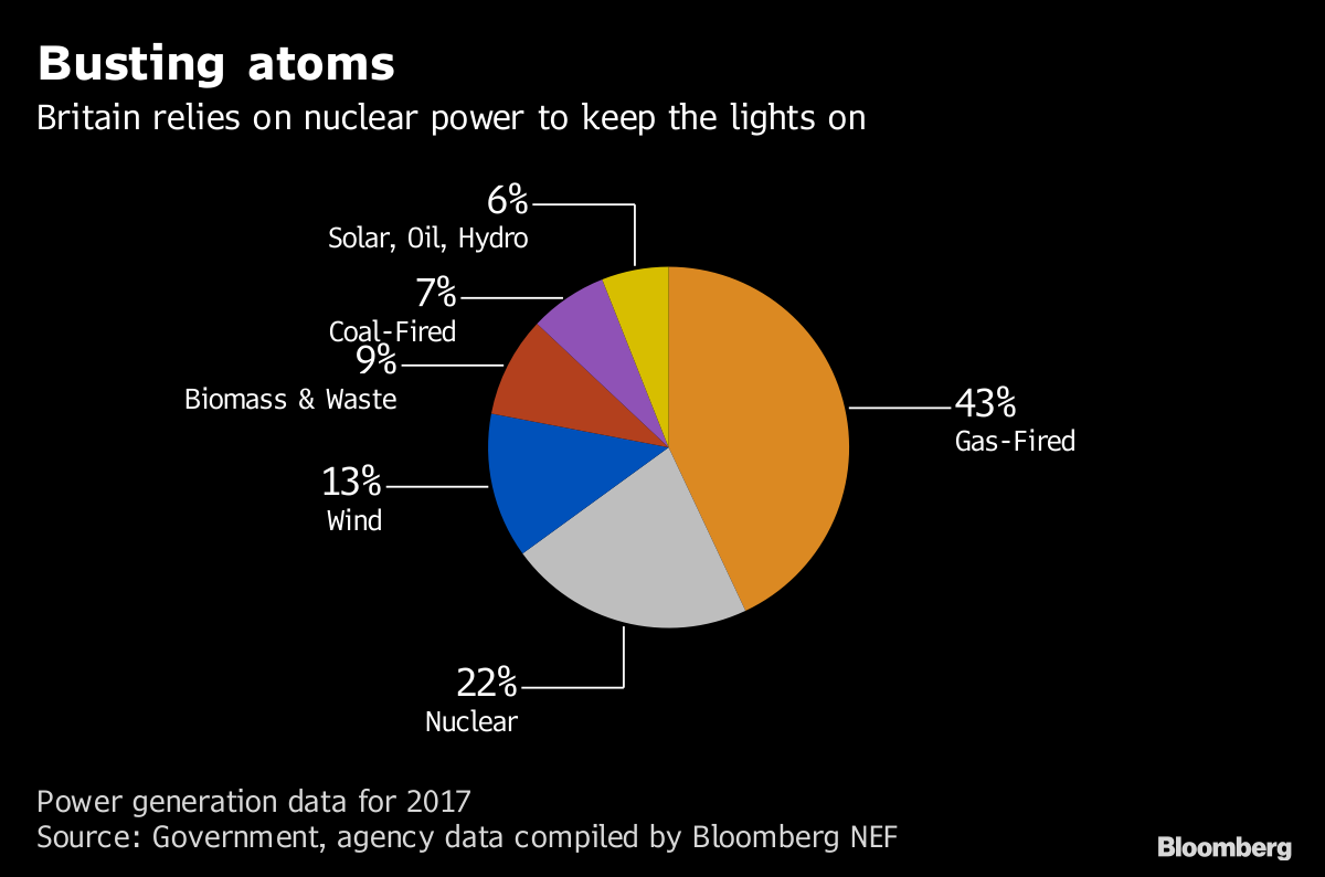The U.K. government has put atomic energy at the heart of its effort to attract 100 billion pounds ($130 billion) of investment to upgrade its aging reactors it needs to keep the lights on. The technology has been seen as a key part in the future power mix, complementing the rising share of renewable energy.