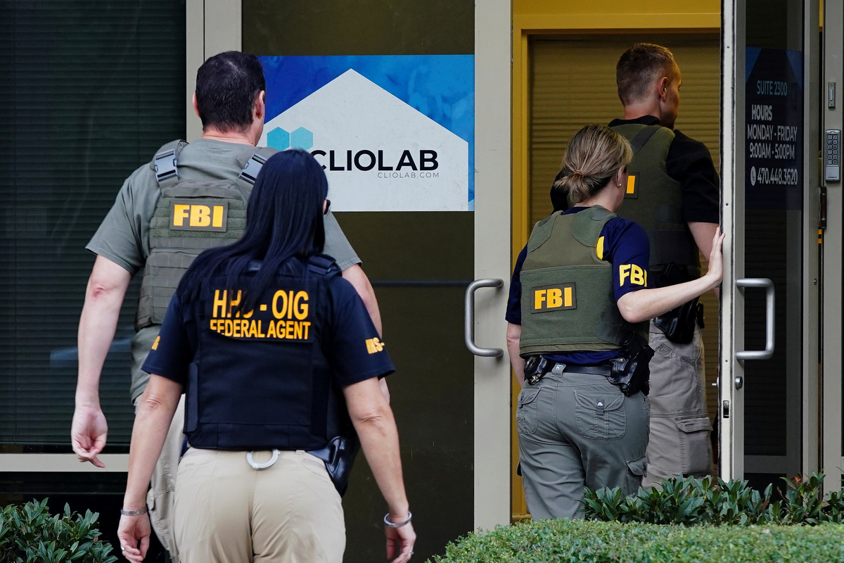 A Reuters journalist early on Friday witnessed agents from the FBI and the U.S. Department of Health and Human Services inspector general's office search Clio, Elite Medical Laboratories and medical billing company Laboratory Experts, which are all located in the same business complex.