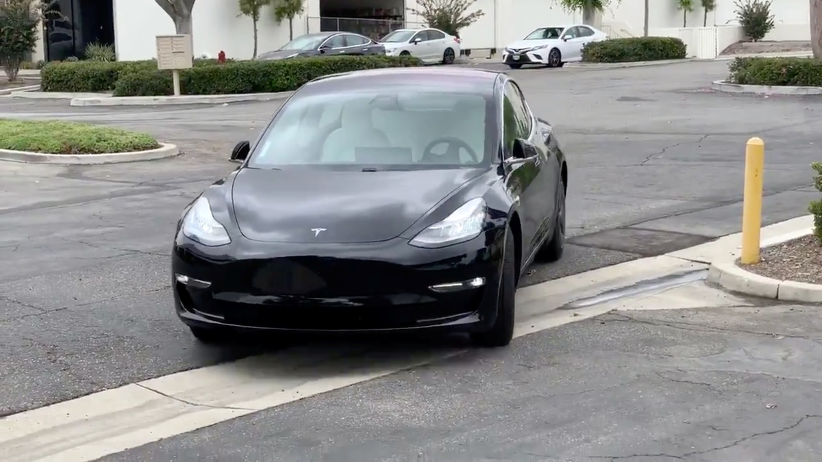 In one Twitter video, a Tesla exits a parking space and starts to cross a driveway when an SUV nearly collides with the driverless car. A voice is heard gasping and exclaiming, "Oh my God!"