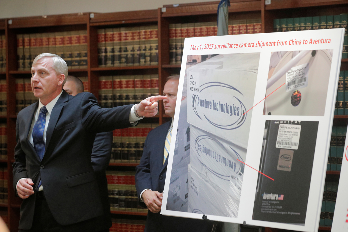 U.S. Attorney Richard Donoghue said the government began investigating the alleged scheme after a member of an Air Force security unit saw an image of a Chinese security service badge in software for one device.