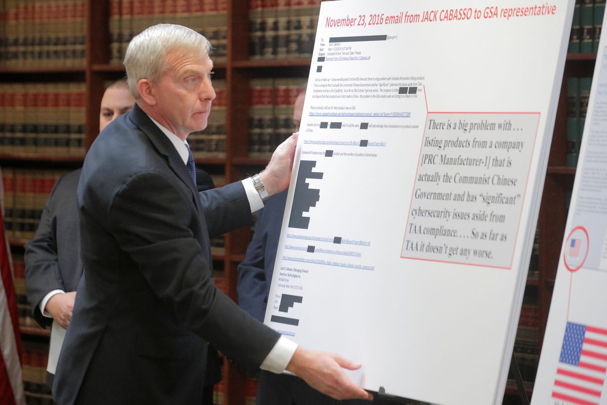 Prosecutors said the defendants falsely told customers that Aventura's products were made in the United States rather than imported, mainly from China, in a scheme that ran from 2006 until this month. Some of those products carried known cybersecurity risks, according to prosecutors.