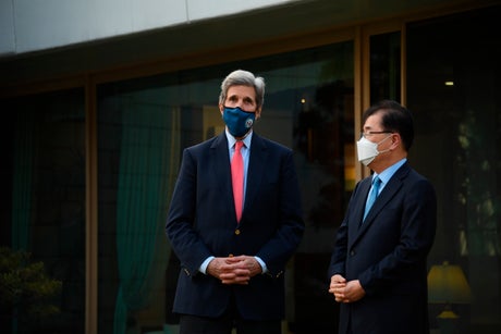 Details from their conversations weren’t immediately released. Kerry and Chung had spoken over the phone twice last month to discuss the countries’ cooperation on climate change and to exchange views on the U.N. Climate Change Conference scheduled to be held in Scotland in November, according to Chung's ministry.