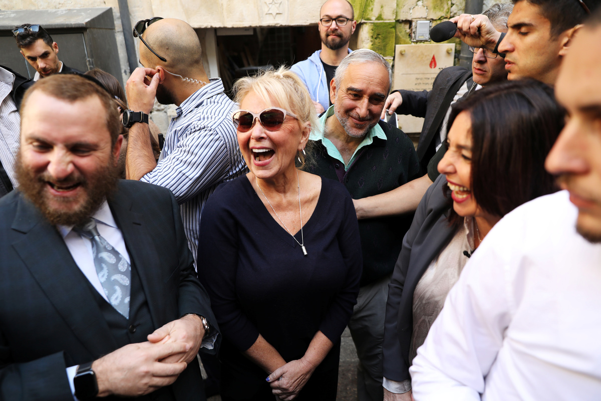 American comedian, Roseanne Barr, laughs as she meets Israel's Minister of Culture and Sport, Miri Regev (2ndR), in Jerusalem's Old City January 27, 2019. REUTERS/Ammar AwadAmerican comedian, Roseanne Barr, walks away after visiting the Western Wall, Judaism's holiest prayer site, in Jerusalem's Old City January 27, 2019. REUTERS/Ammar Awad