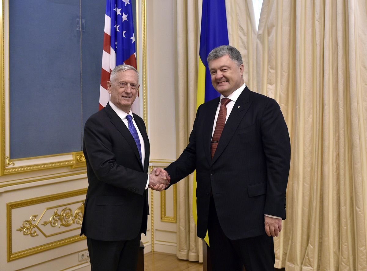 Poroshenko said he was "satisfied" with the progress on discussions about weapons, and also said he and Mattis had discussed the possibility of a U.N.-backed armed force being sent to eastern Ukraine.