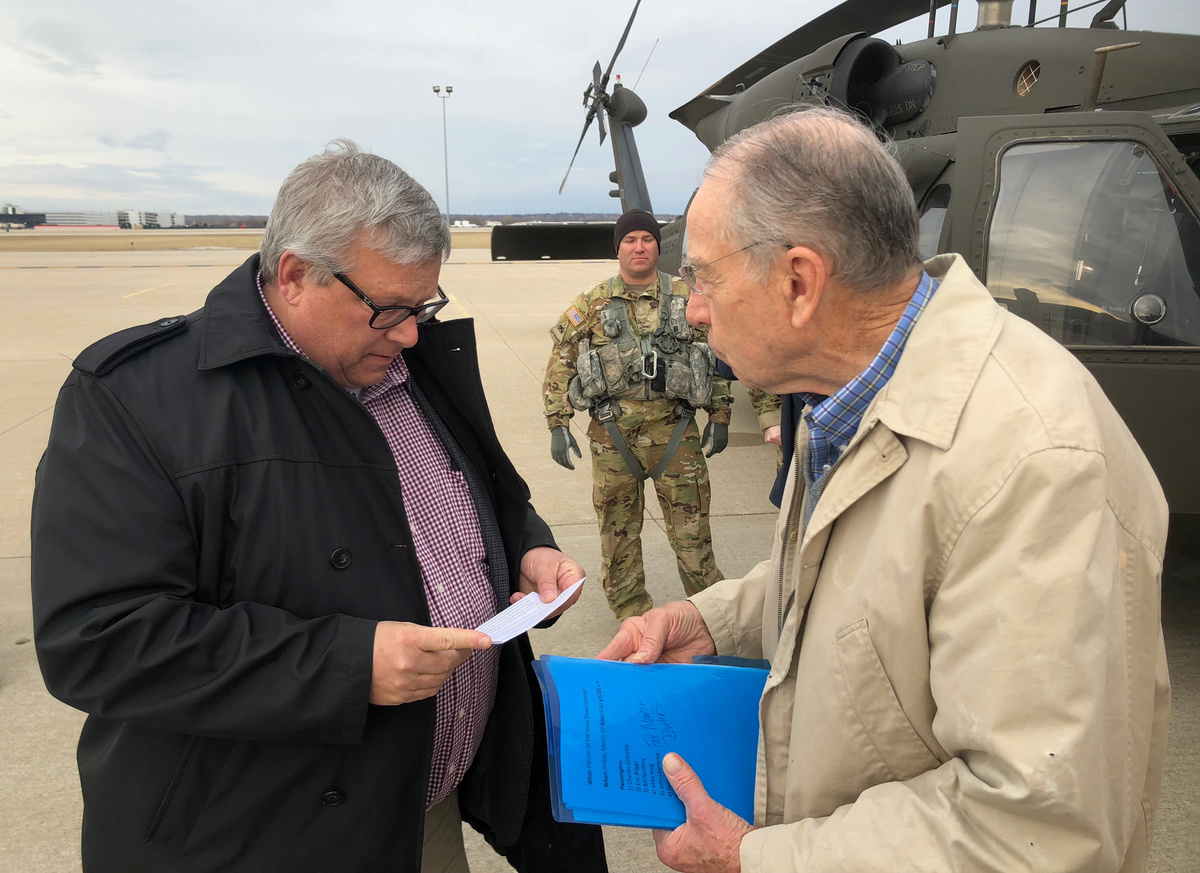 "If we have to pass a bill to do it, I hate to tell you how long that takes," said the senator from Iowa, who joined Northey on the helicopter tour.