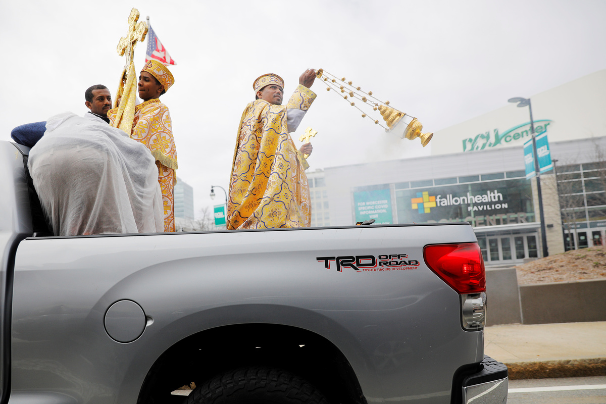 A few churches held large gatherings on Palm Sunday, the beginning of Holy Week in Christian churches.