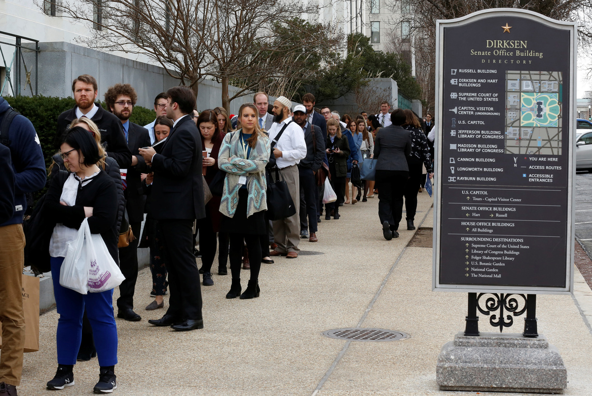 Tens of thousands of federal workers had begun closing down operations for lack of funding on Monday, the first weekday since the shutdown, but essential services such as security and defence operations had continued.