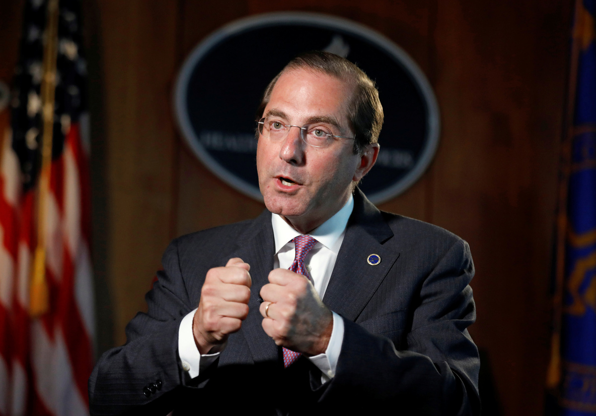 (Reuters) - U.S. Health and Human Services Secretary Alex Azar told CNBC on Friday he was "completely in support" of the Food and Drug Administration's proposed crackdown on e-cigarettes.