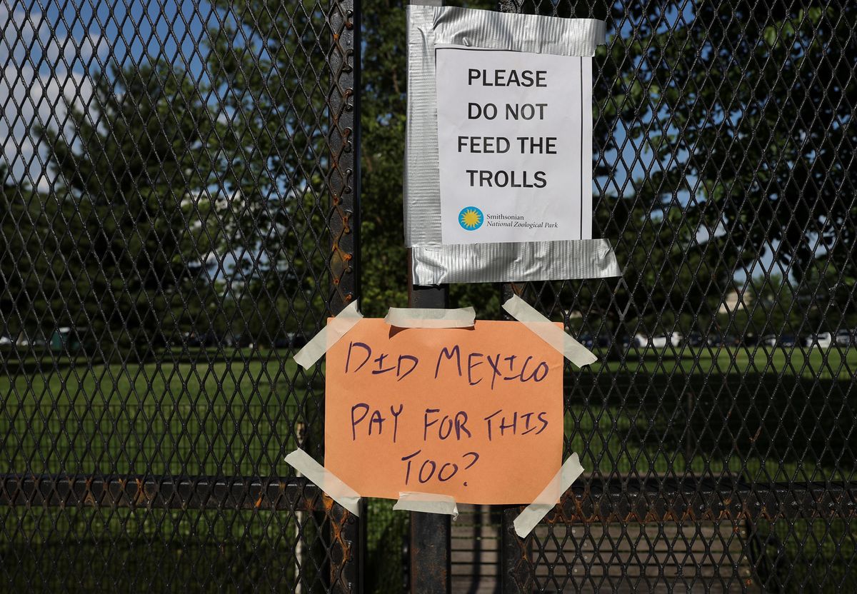 Signs attached to the security fences of the White House are pictured during a protest against racial inequality in the aftermath of the death in Minneapolis police custody of George Floyd, in Washington, U.S. June 6, 2020. REUTERS/Jonathan Ernst
