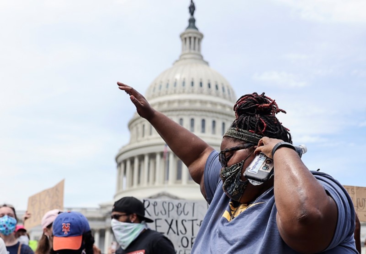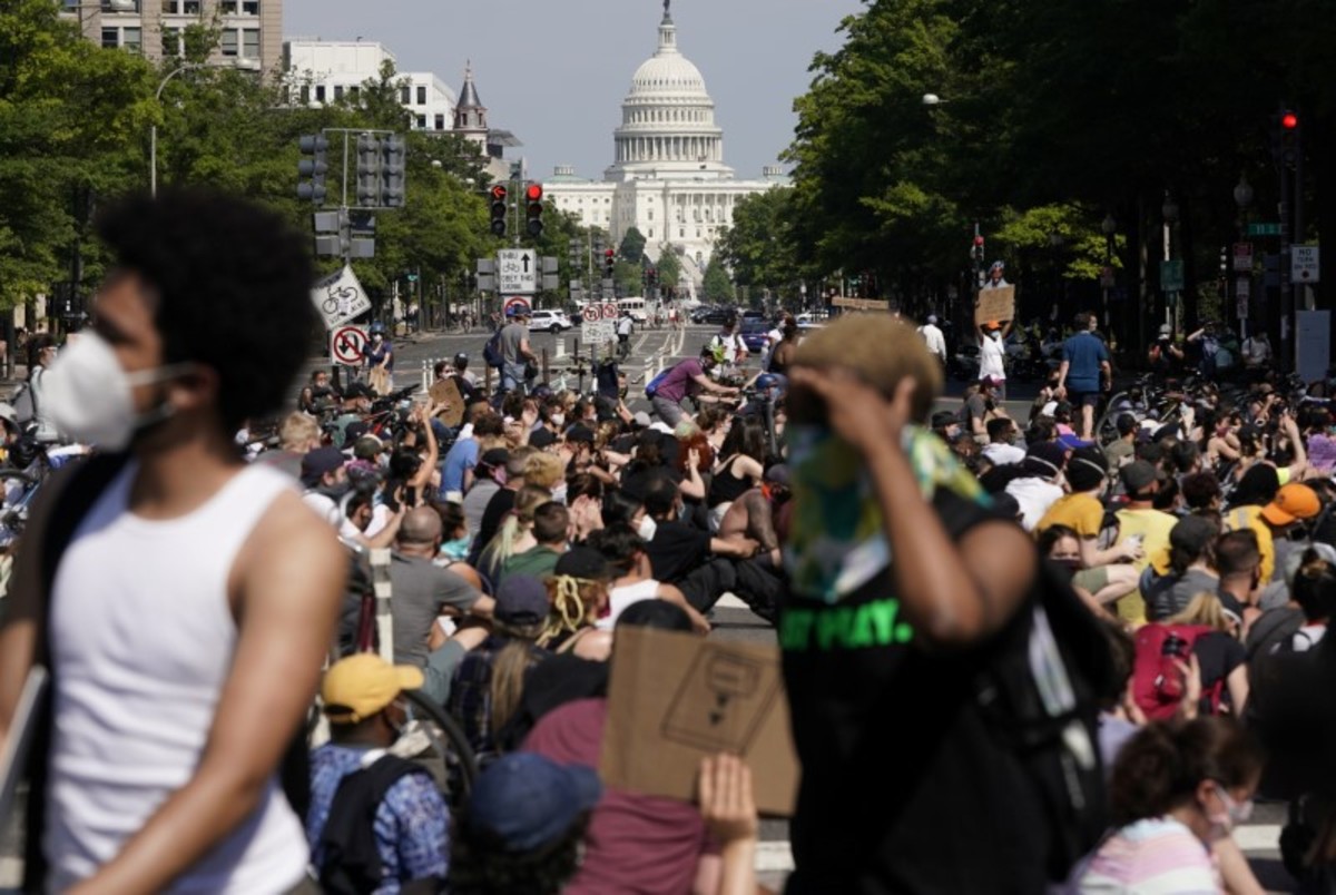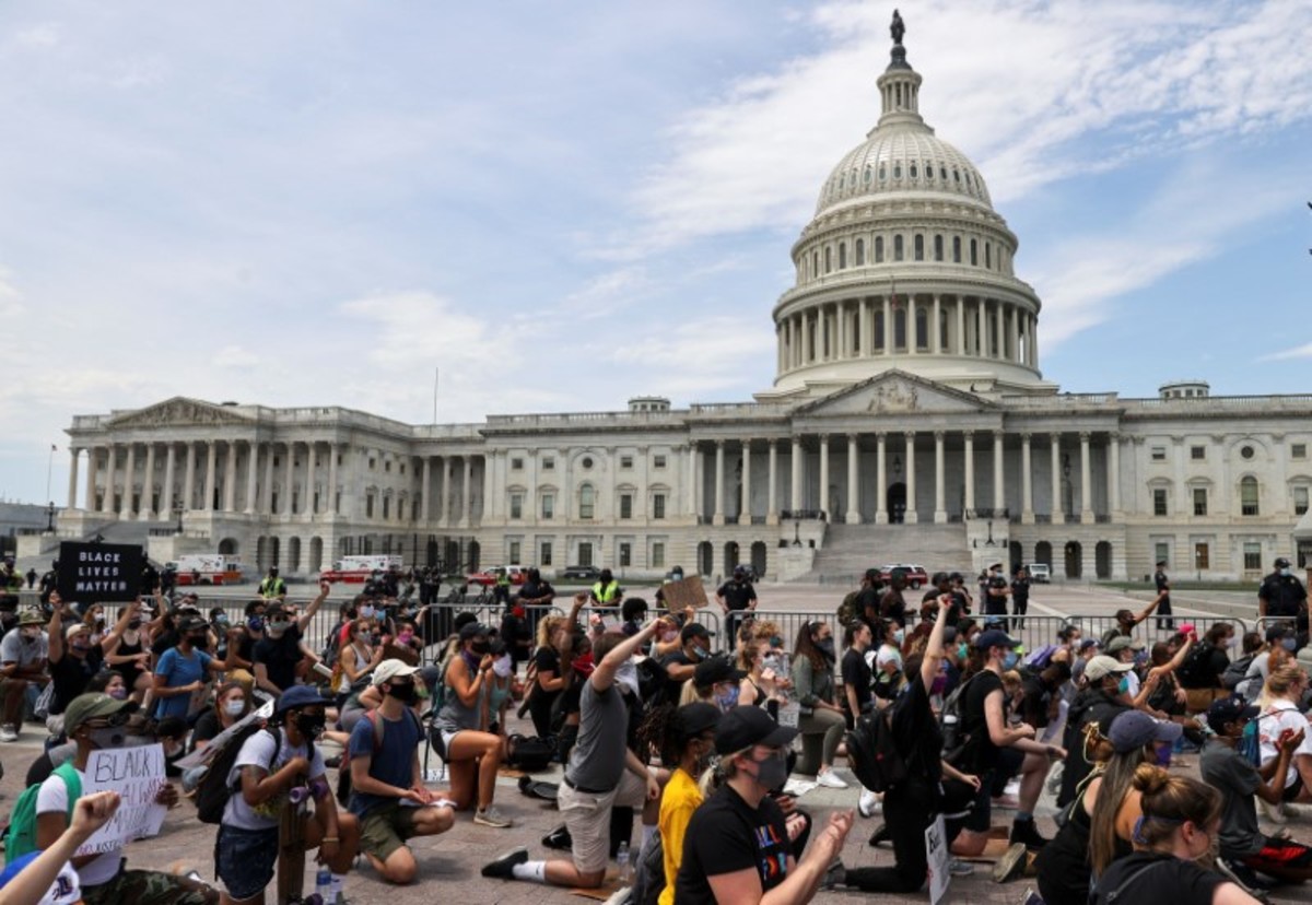 SENSITIVE MATERIAL. THIS IMAGE MAY OFFEND OR DISTURB The U.S. Capitol is seen in the background as protesters march during a rally against the death in Minneapolis police custody of George Floyd, in Washington, U.S., June 3, 2020. REUTERS/Joshua Roberts