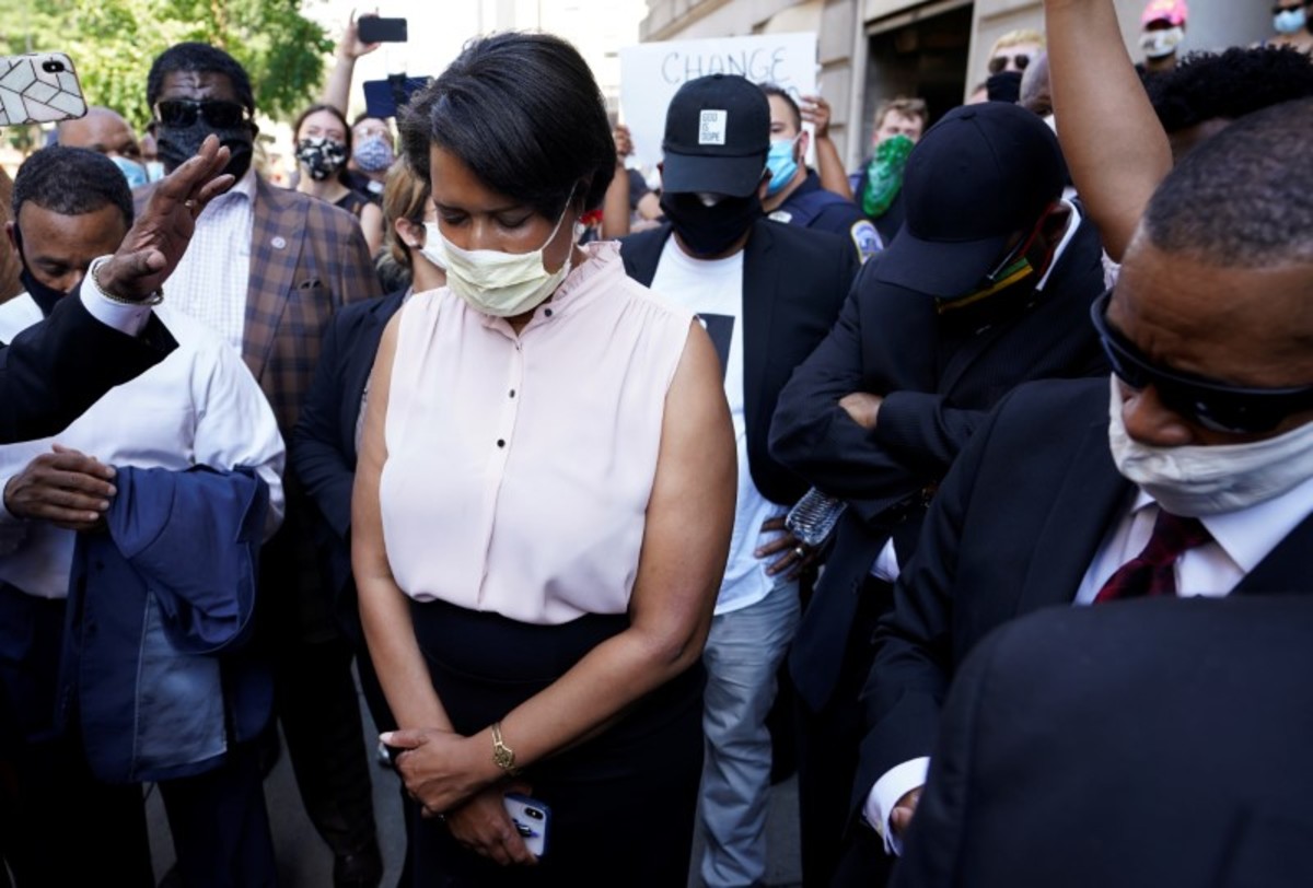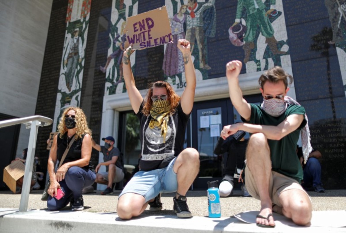 People take part in a "die-in" as they protest following the death in Minneapolis police custody of George Floyd, in Boston, Massachusetts, U.S., June 3, 2020. REUTERS/Brian SnyderDemonstrators raise their hands as they stand in front of law enforcement officers during a protest against the death in Minneapolis police custody of George Floyd, near the White House in Washington, U.S., June 3, 2020. REUTERS/Jonathan ErnstThe U.S. Capitol is seen in the background as a protester holds up a banner during a rally against the death in Minneapolis police custody of George Floyd, outside the Trump International Hotel, in Washington, U.S., June 3, 2020. REUTERS/Joshua RobertsPeople attend a protest against the death in Minneapolis police custody of George Floyd, in New York City, U.S., June 3, 2020. REUTERS/Eduardo MunozCalifornia National Guard members stand guard as people attend a protest against the death in Minneapolis police custody of George Floyd, at a Hollywood Walk of Fame, Los Angeles, California, U.S. June 3, 2020. REUTERS/Lucy NicholsonThe statue of Benjamin Franklin is seen during a rally against the death in Minneapolis police custody of George Floyd, outside the Trump International Hotel, in Washington, U.S., June 3, 2020. REUTERS/Joshua RobertsPeople attend a protest against the death in Minneapolis police custody of George Floyd, at a Hollywood Walk of Fame, Los Angeles, California, U.S. June 3, 2020. REUTERS/Lucy NicholsonProtesters rally against the death in Minneapolis police custody of George Floyd, with the U.S. Capitol building seen in the background, outside the Trump International Hotel, in Washington, U.S., June 3, 2020. REUTERS/Joshua RobertsBrooklyn Prince, 8, sits in the lap of Ashley Prince as they hold out their hands in solidarity with other protesters during a spontaneous caravan rally of vehicles against the death in Minneapolis police custody of George Floyd, through downtown Houston, Texas, U.S., June 2, 2020. REUTERS/Adrees Latif Bishop Mariann Edgar Budde speaks next to a demonstrator holding a sign referencing U.S. President Donald Trump's surprise trip to a vandalized church near the White House during which he held up a Bible for photographers, as protests continue on the streets near the White House over the death in police custody of George Floyd, in Washington, U.S., June 3, 2020. REUTERS/Kevin Lamarque?Members of the community volunteer to clean up the debris left after a building burned and collapsed during demonstrations in reaction to the death in Minneapolis police custody of George Floyd in Minneapolis, Minnesota, U.S., May 30, 2020. Picture taken on May 30, 2020. REUTERS/Lucas Jackson A protester holds an inflatable heart at a rally following the death in Minneapolis police custody of George Floyd, in Boston, Massachusetts, U.S., June 3, 2020. REUTERS/Brian SnyderWashington, DC Mayor Muriel Bowser bows her head in prayer during a vigil as protests continue on the streets near the White House over the death in police custody of George Floyd, in Washington, U.S., June 3, 2020. REUTERS/Kevin Lamarque?A person holds a Black Lives Matter banner, as people attend a protest against the death in Minneapolis police custody of George Floyd, in Hollywood, Los Angeles, California, U.S. June 3, 2020. REUTERS/Lucy NicholsonA priest who declined to give his name sits in front of police as protests continue on the streets near the White House over the death in police custody of George Floyd, in Washington, U.S., June 3, 2020. REUTERS/Kevin Lamarque?A demonstrator offers a protective face mask for protection from coronavirus disease (COVID-19) to a law enforcement officer not wearing one as police face off with demonstrators while protests continue on the streets of near the White House over the death in police custody of George Floyd, in Washington, U.S., June 3, 2020. REUTERS/Kevin LamarqueA demonstrator wearing a protective mask takes part in a protest against the death in Minneapolis police custody of George Floyd, in Rotterdam, Netherlands June 3, 2020. REUTERS/Eva Plevier People take a knee during a Black Lives Matter rally, as protests continue over the death in Minneapolis police custody of George Floyd, outside the U.S. Capitol in Washington, U.S., June 3, 2020. REUTERS/Jonathan ErnstPolice officers detain a protester following a clash near Downing Street during a "Black Lives Matter" protest following the death of George Floyd who died in police custody in Minneapolis, London, Britain, June 3, 2020. REUTERS/Toby Melville A demonstrator lies down on the ground attempting to block the police's passage during a protest against the death in Minneapolis police custody of George Floyd, in Rotterdam, Netherlands June 3, 2020. REUTERS/Eva PlevierRiot police walk past flames as they clash with protesters, during a demonstration against the death in Minneapolis police custody of George Floyd, outside the U.S. embassy in Athens, Greece, June 3, 2020. REUTERS/Alkis KonstantinidisA demonstrator holds a sign reading "run Melania run," referring to first lady Melania Trump, as protests continue on the streets near the White House over the death in police custody of George Floyd, in Washington, U.S., June 3, 2020. REUTERS/Kevin Lamarque A demonstrator spray paints a hangman symbol from the word game by the same name, as protests continue on the streets near the White House over the death in police custody of George Floyd, in Washington, U.S., June 3, 2020. REUTERS/Kevin Lamarque Demonstrators participate in a Black Lives Matter rally as protests continue over the death in Minneapolis police custody of George Floyd, outside the U.S. Capitol in Washington, U.S., June 3, 2020. REUTERS/Jonathan ErnstPeople board up a storefront window in Soho after protests against the death in Minneapolis police custody of George Floyd in Manhattan, New York, U.S., June 3, 2020. REUTERS/Caitlin Ochs