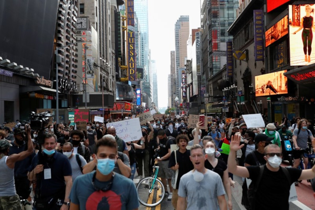 People attend a protest against the death in Minneapolis police custody of George Floyd, at Times Square in New York City, U.S., June 3, 2020. REUTERS/Andrew Kelly