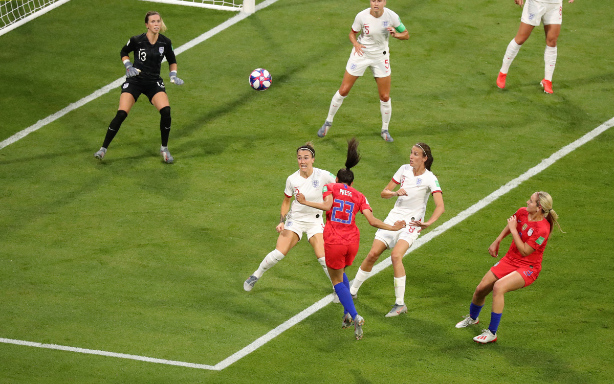 After a powerful start from the Americans, Christen Press, replacing the absent Megan Rapinoe, opened the scoring in the 10th minute with a fine header but the Lionesses fought back, levelling nine minutes later with Ellen White's sixth goal of the tournament.