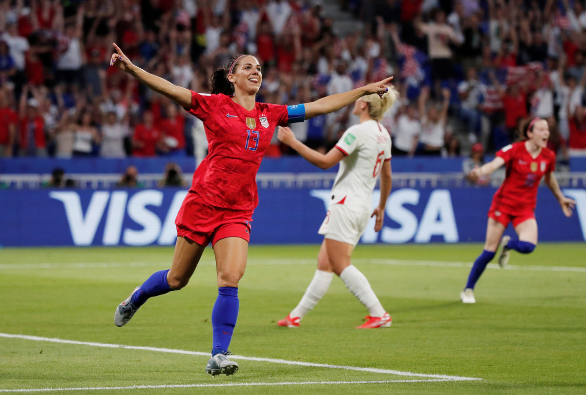 The U.S. restored their advantage in the 31st minute through Alex Morgan's header from Lindsey Horan's perfectly floated ball -- a goal which Morgan, on her 30th birthday, celebrated with a mocking 'sip of tea' gesture.