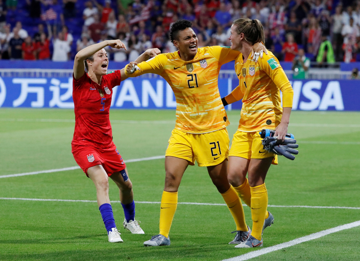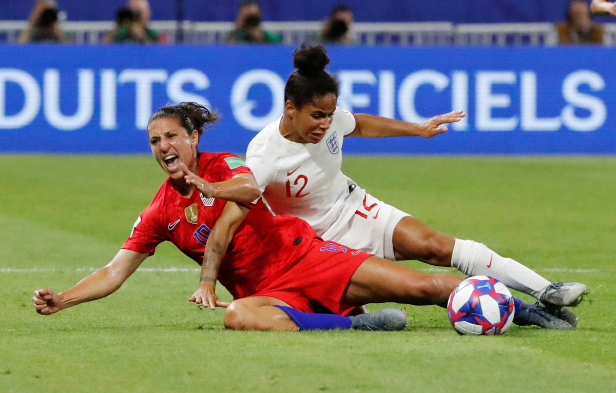 LYON, France (Reuters) - Defending champions United States reached the women's World Cup final for the fifth time after an incident-packed 2-1 win over England, who missed a late penalty, on Tuesday.