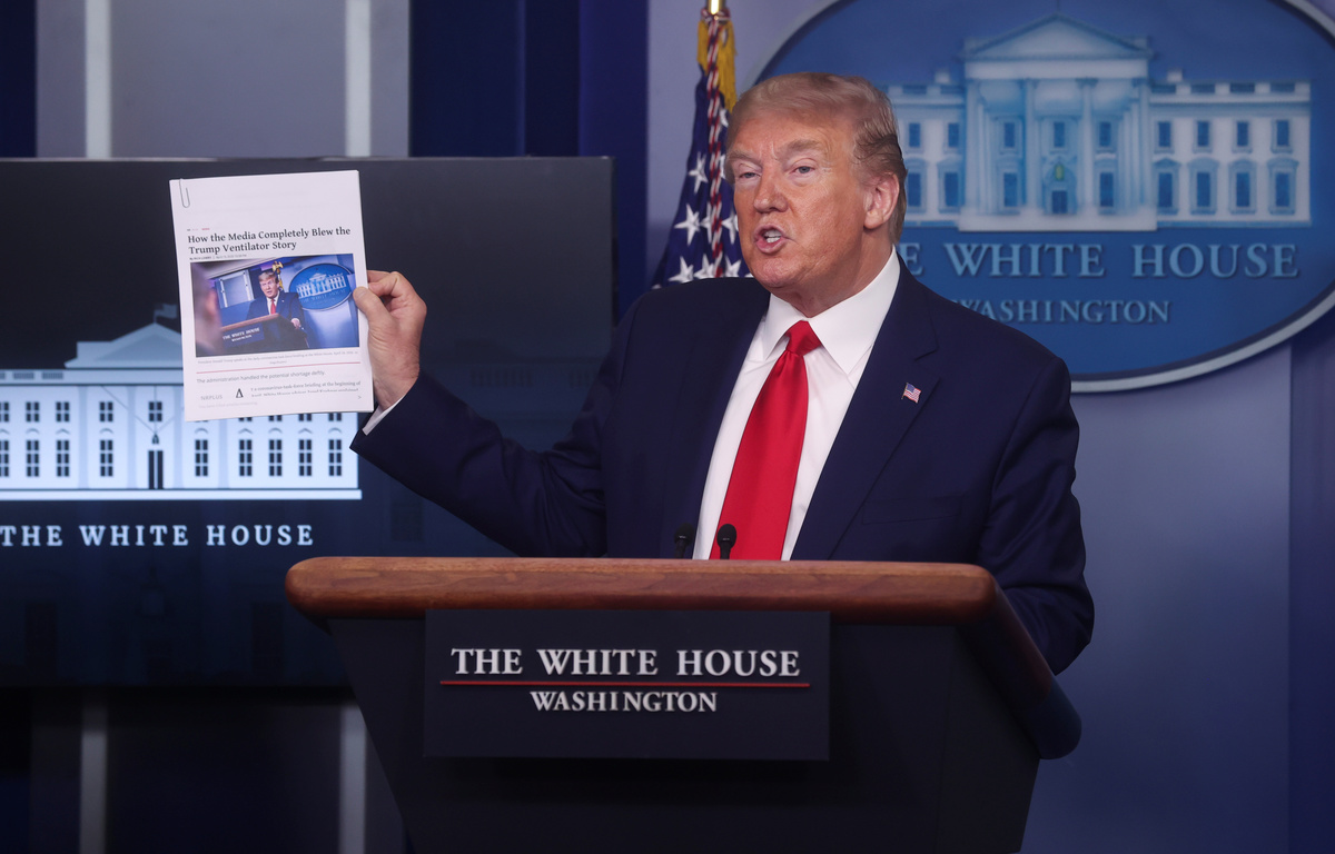 On Monday, U.S. President Donald Trump taunted critics of his administration's coronavirus response, tweeting: "Last month all you heard from the Radical Left, Do Nothing Democrats was, “Ventilators, Ventilators, Ventilators.” They screamed it loud & clear, & thought they had us cold, even though it was the State's task. But everyone got their V’s, with many to spare."