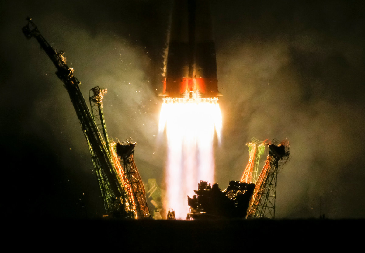 The Soyuz MS-06 spacecraft carrying the crew of Joe Acaba and Mark Vande Hei of the U.S., and Alexander Misurkin of Russia blasts off to the International Space Station (ISS) from the launchpad at the Baikonur Cosmodrome, Kazakhstan September 13, 2017. REUTERS/Shamil Zhumatov