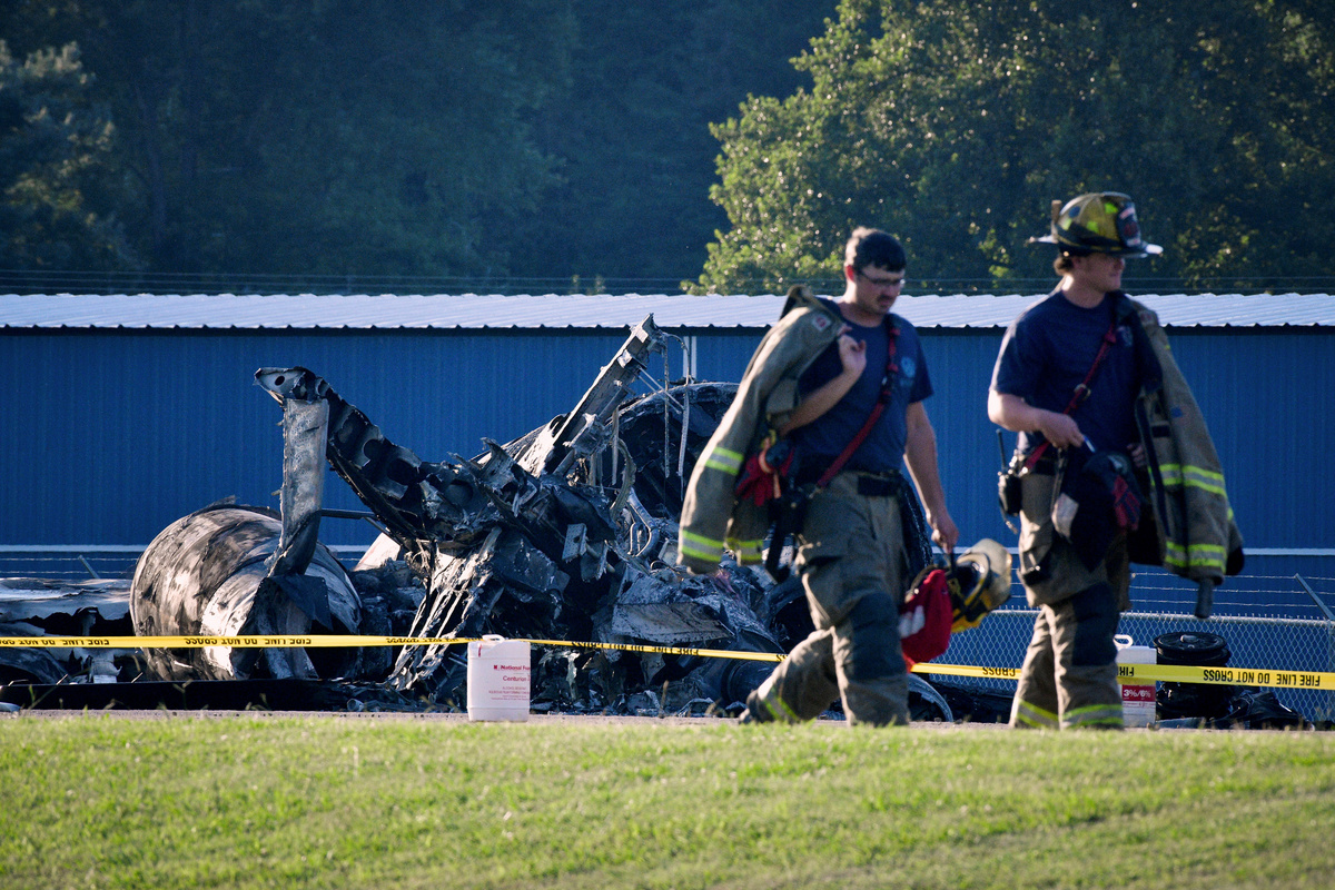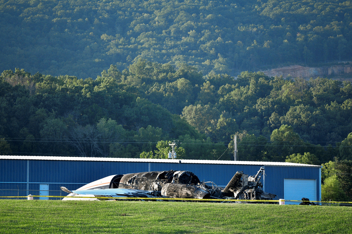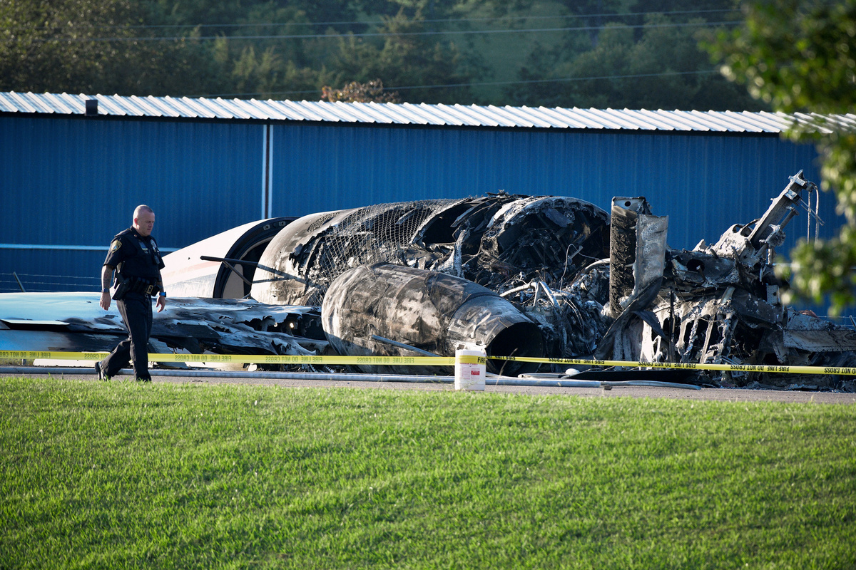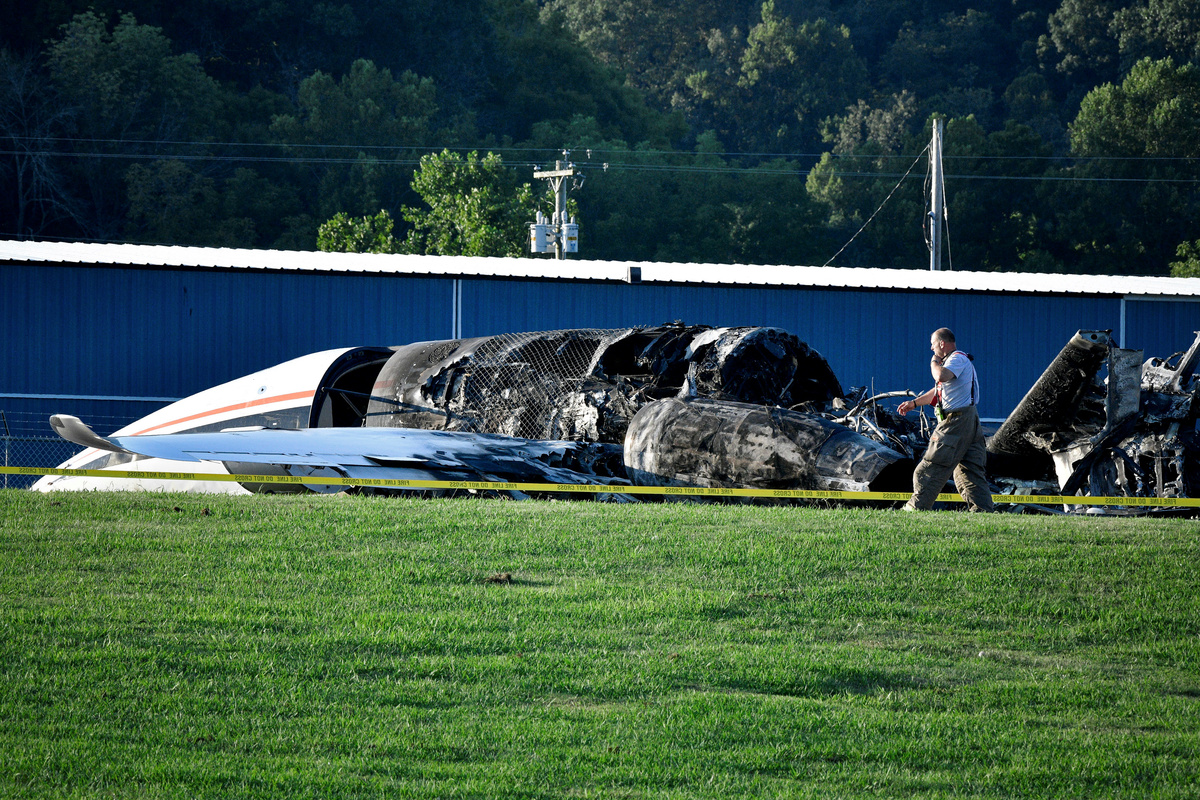 First responders walk near the wreckage of a plane crash involving NASCAR driver Dale Earnhardt Jr. and his family, who survived the incident, in Elizabethton, Tennessee, U.S. August 15, 2019. REUTERS/Charles MostollerA police officer looks at the wreckage of a plane crash involving NASCAR driver Dale Earnhardt Jr. and his family, who survived the incident, in Elizabethton, Tennessee, U.S. August 15, 2019. REUTERS/Charles MostollerThe wreckage of a plane crash involving NASCAR driver Dale Earnhardt Jr. and his family, who survived the incident, in Elizabethton, Tennessee, U.S. August 15, 2019. REUTERS/Charles MostollerA police officer walks past the wreckage of a plane crash involving NASCAR driver Dale Earnhardt Jr. and his family, who survived the incident, in Elizabethton, Tennessee, U.S. August 15, 2019. REUTERS/Charles MostollerA police officer walks past the wreckage of a plane crash involving NASCAR driver Dale Earnhardt Jr. and his family, who survived the incident, in Elizabethton, Tennessee, U.S. August 15, 2019. REUTERS/Charles MostollerThe wreckage of a plane crash involving NASCAR driver Dale Earnhardt Jr. and his family, who survived the incident, in Elizabethton, Tennessee, U.S. August 15, 2019. REUTERS/Charles MostollerFirefighters walk past the wreckage of a plane crash involving NASCAR driver Dale Earnhardt Jr. and his family, who survived the incident, in Elizabethton, Tennessee, U.S. August 15, 2019. REUTERS/Charles MostollerEmergency vehicles arrive at Elizabethton Municipal Airport, Tennessee, U.S. August 15, 2019 after a Cessna Citation plane carrying retired racecar driver Dale Earnhardt Jr., his wife and daughter, rolled off the end of a runway at the airport and caught fire, in this still image taken from a social media video. MANDATORY CREDIT Scott Reis via REUTERSFILE PHOTO: Dale Earnhardt Jr. gets a ride back to his team after speaking with reporters following his last race at Talladega before his impending retirement, after fading to a seventh-place finish in NASCAR's Alabama 500 at Talladega Superspeedway in Lincoln, Alabama, U.S. October 15, 2017. REUTERS/Jonathan Ernst