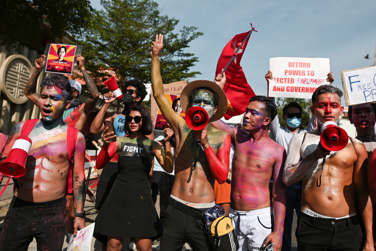Other demonstrations took place in Naypyitaw, the coastal town of Dawei, and in Myitkyina, the capital of northern Kachin state, where young men played rap music and staged a dance-off.