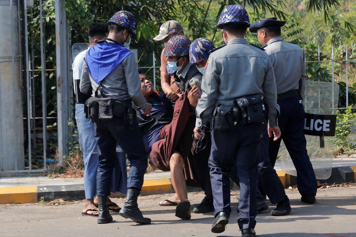 A broadcast by state-run Myanmar Radio and Television (MRTV) said police had fired 10 rubber bullets because protesters were "continuing violent acts without dispersing from the area". The report made no mention of any people being wounded.