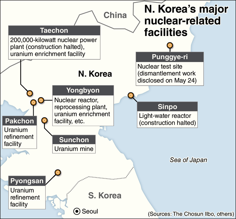 North Korea has such nuclear sites as a graphite-moderated reactor in Yongbyon and a test site in Punggye-ri, which it blew up on May 24. However, North Korea has likely established nuclear facilities and weapons warehouses underground, which would make it hard for U.S. reconnaissance satellites to detect them.