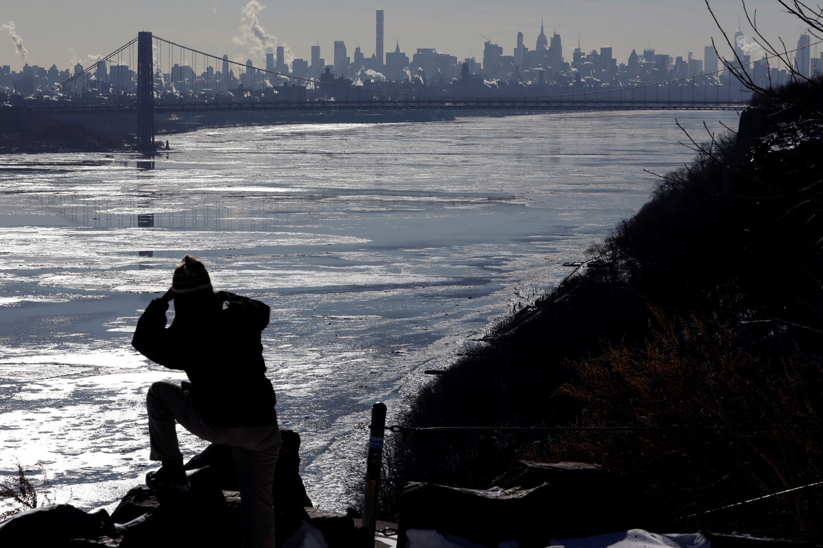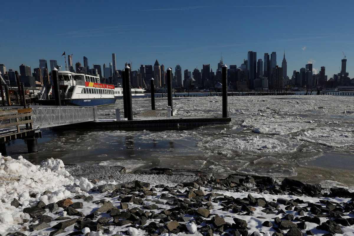 Ice is seen on the Hudson River between New Jersey and New York City, as seen from Weehawken, New Jersey, U.S., January 7, 2018. REUTERS/Mike Segar