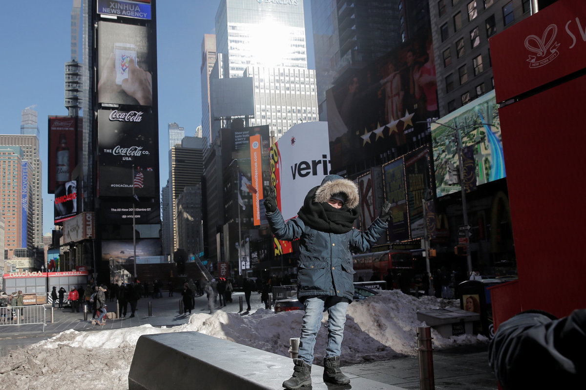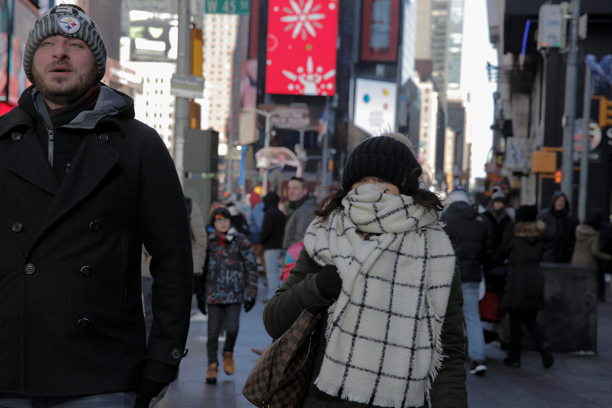 People bundle up against the cold in Times Square in New York City, New York, U.S., January 7, 2018. REUTERS/Elizabeth ShafiroffPeople bundle up against the cold in Times Square in New York City, New York, U.S., January 7, 2018. REUTERS/Elizabeth ShafiroffA child poses for a photograph in Times Square in New York City, New York, U.S., January 7, 2018. REUTERS/Elizabeth ShafiroffPeople bundle up against the cold in Times Square in New York City, New York, U.S., January 7, 2018. REUTERS/Elizabeth ShafiroffA woman photographs ice on the Hudson River, with the George Washington Bridge and New York City in the background, from the Rockefeller Lookout in the Palisades Interstate Park in Englewood, New Jersey, U.S., January 7, 2018. REUTERS/Mike SegarCars are seen on a flooded street in Boston, Massachusetts, U.S., in this still image taken from a January 4, 2018 social media video. INSTAGRAM/@DOILOVEYOU/via REUTERS REFILE - CORRECTING BYLINE Cars are seen on a flooded street in Boston, Massachusetts, U.S., in this still image taken from a January 4, 2018 social media video. INSTAGRAM/@DOILOVEYOU/via REUTERS A winter storm sweeping across Ontario, eastern Canada and the northeastern United States is pictured in a NASA handout satellite photo January 6, 2018. NASA/Handout via REUTERSA winter storm sweeping across Ontario, eastern Canada and the northeastern United States is pictured in a NASA handout satellite photo January 6, 2018. NASA/Handout via REUTERS Cars are seen on a flooded street in Boston, Massachusetts, U.S., in this still image taken from a January 4, 2018 social media video. INSTAGRAM/@DOILOVEYOU/via REUTERS Cars are seen on a flooded street in Boston, Massachusetts, U.S., in this still image taken from a January 4, 2018 social media video. INSTAGRAM/@DOILOVEYOU/via REUTERS