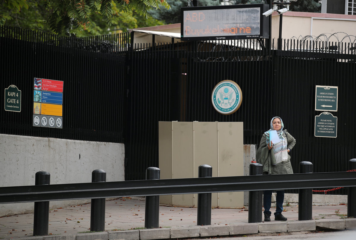 ANKARA (Reuters) - The U.S. mission in Turkey and subsequently the Turkish mission in Washington mutually scaled back visa services after a U.S. consulate employee was arrested in Turkey, in the latest sign of fraying diplomatic relations between the NATO allies.