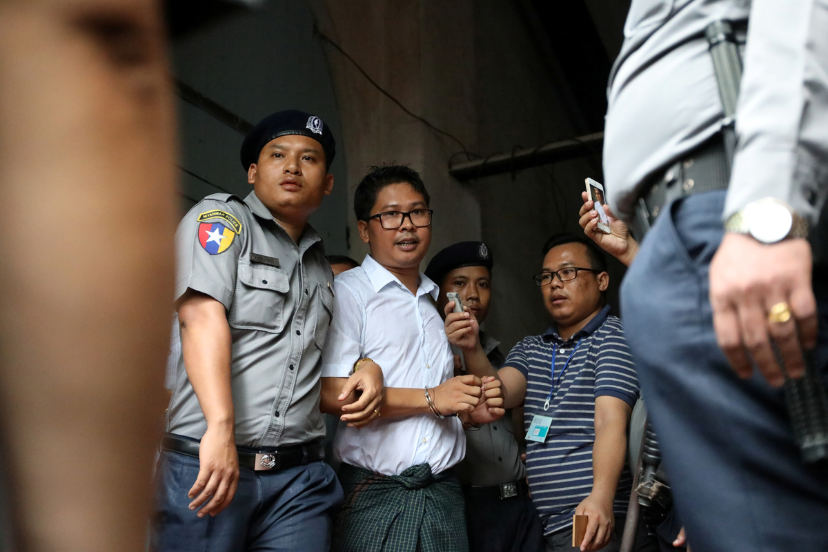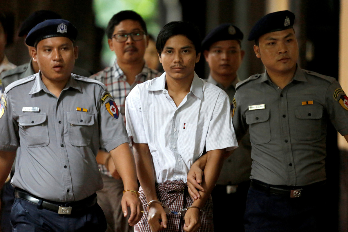The journalists were arrested on Dec. 12 while investigating the killing of 10 Rohingya men and boys and other abuses involving soldiers and police in the village of Inn Din.