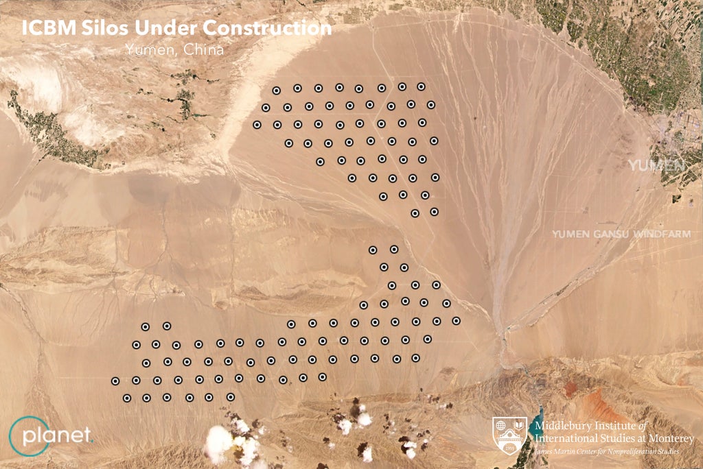 “The Chinese missile silo program constitutes the most extensive silo construction since the U.S. and Soviet missile silo construction during the Cold War,” researchers Matt Korda and Hans Kristensen wrote in the Federation of American Scientists report.