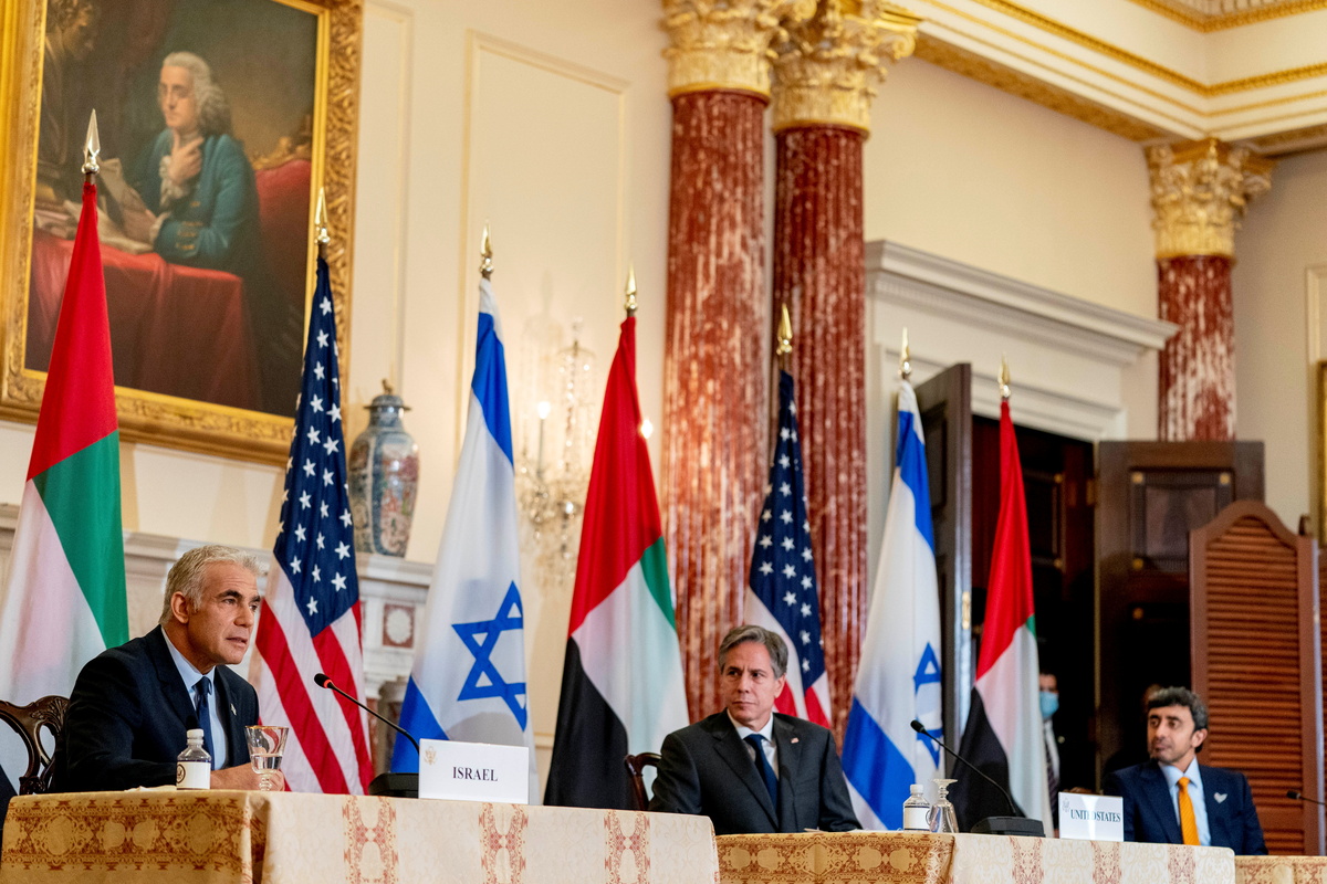 Blinken spoke in response to a reporter's question after a trilateral meeting that marked the latest sign of the Biden administration’s embrace of the so-called Abraham Accords, which were widely seen as a diplomatic success for Trump.